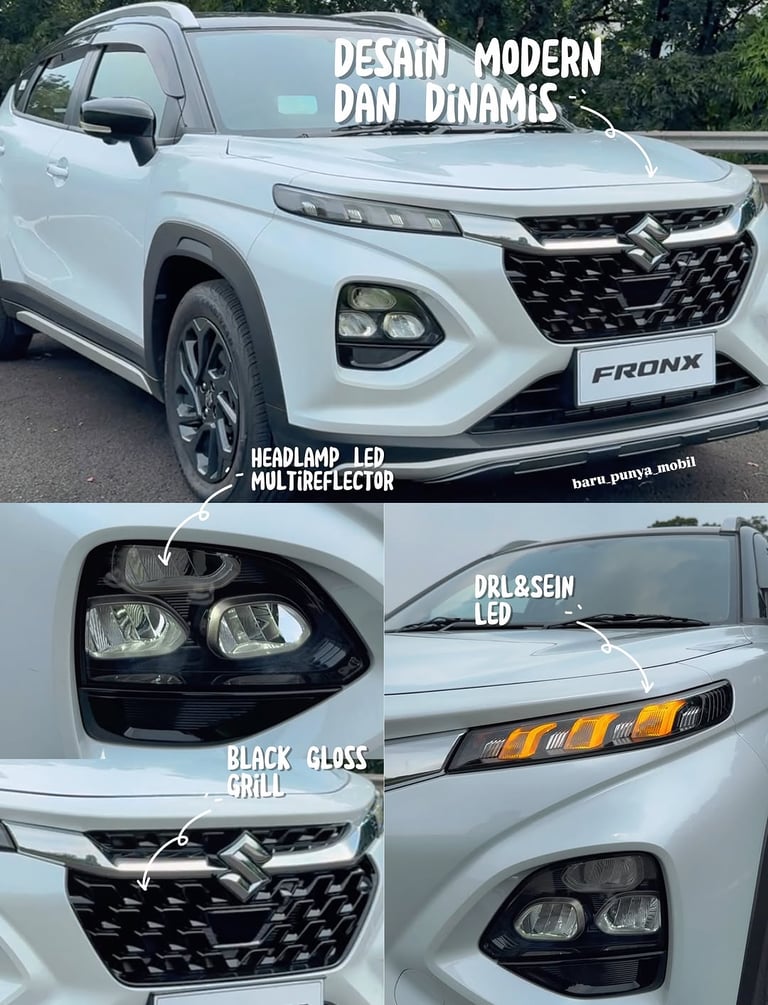 Suzuki Fronx dengan design yg elegant dan bergaya kekinian di lengkapi dengan fitur keselamatan yang sangat lengkap dan sudah hybrid dengan konsumsi bahan bakar yg sangat irit , dengan harga yg sangat terjangkau, di sertai promo diskon dan bonus besar spesial akhir tahun .